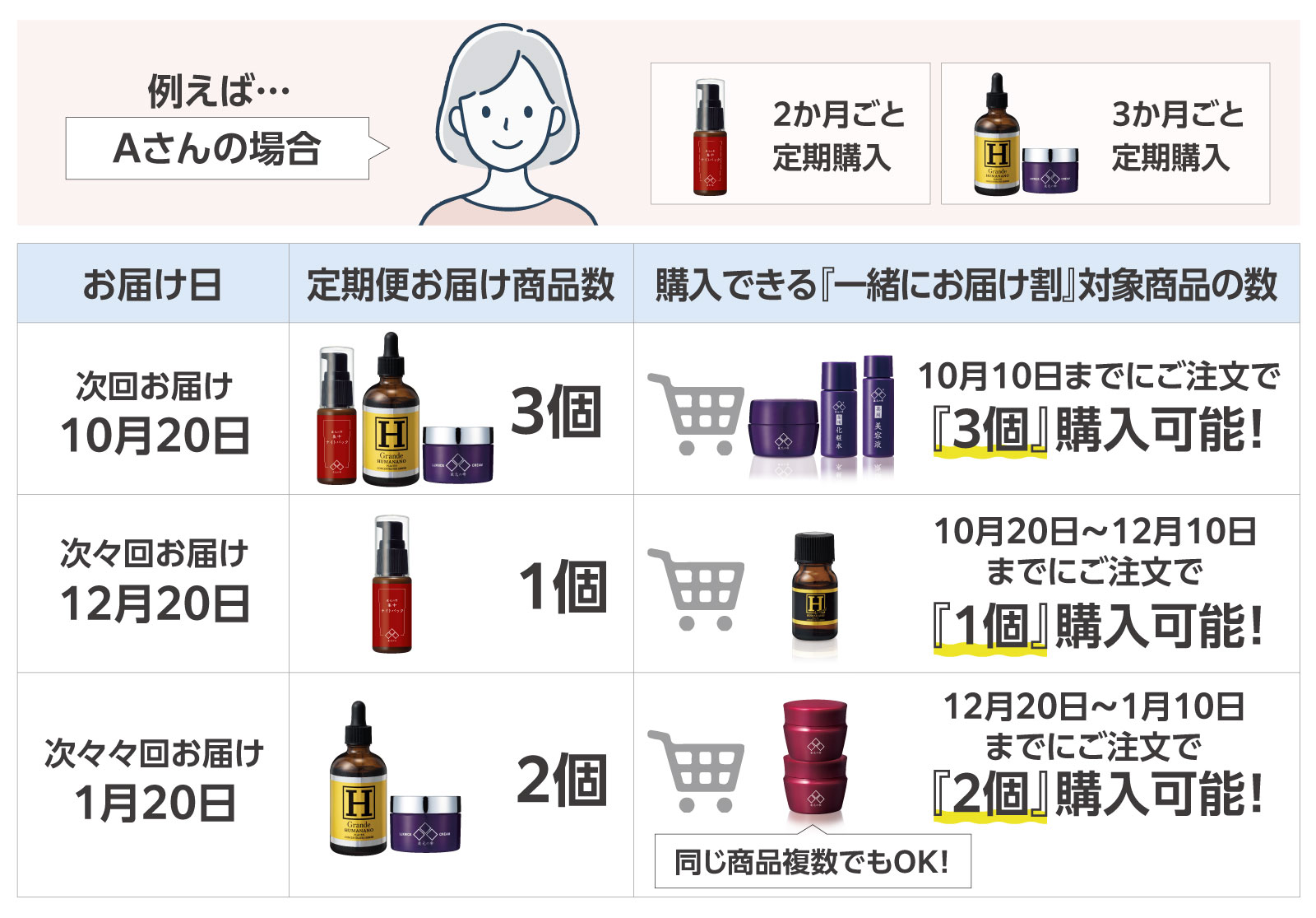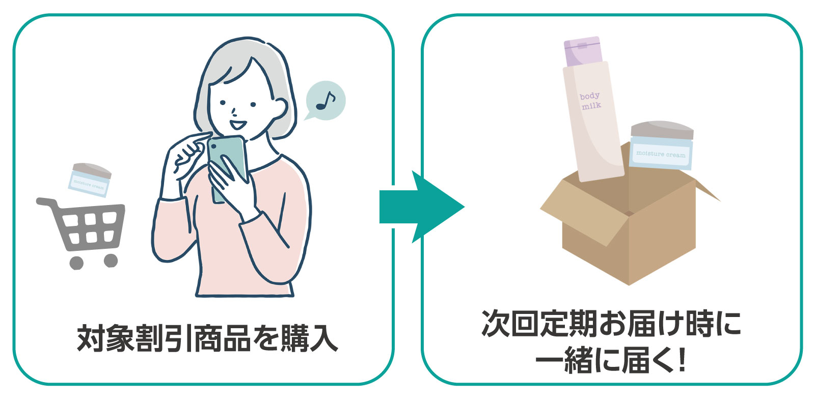 「定期便と一緒にお届け」でスキンケアアイテムがお得に。