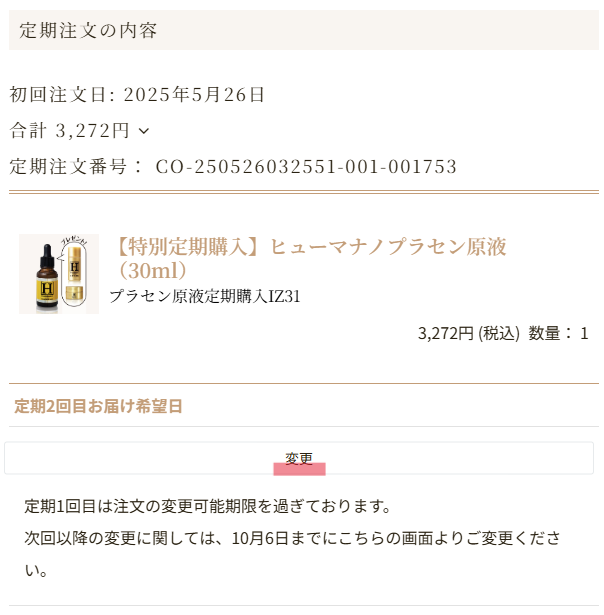 3. 定期○回目お届け希望日の「変更」をクリック |