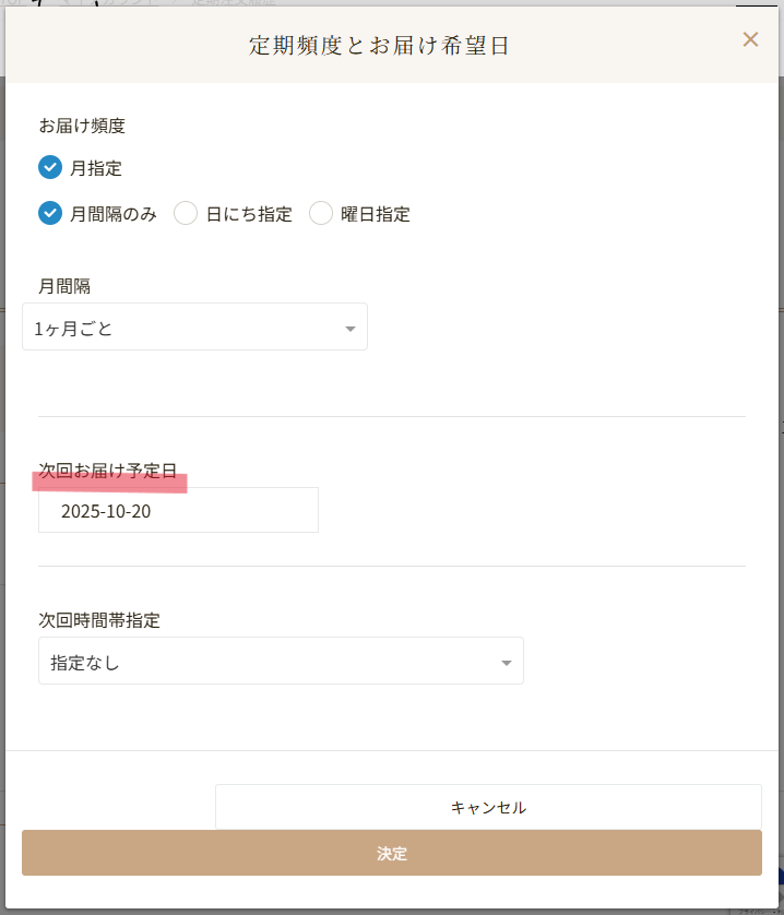 4. 次回お届け予定日の下部にお届け日のご記載があります。 |