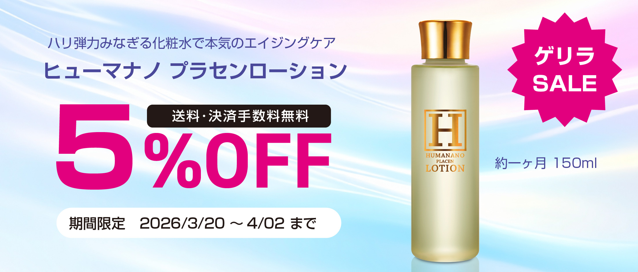 【ゲリラSALE】ヒューマナノプラセンローション(150ml)が今だけ5%OFF&送料・決済手数料無料♪